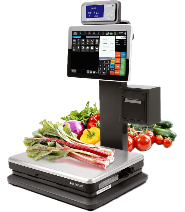 Olympia kassa met nauwkeurige weegschalen tot 15 kg – ideaal voor verse producten in winkels, marktkramen of kiosken. Directe gewichtsregistratie voor snelle afrekenprocessen.